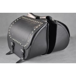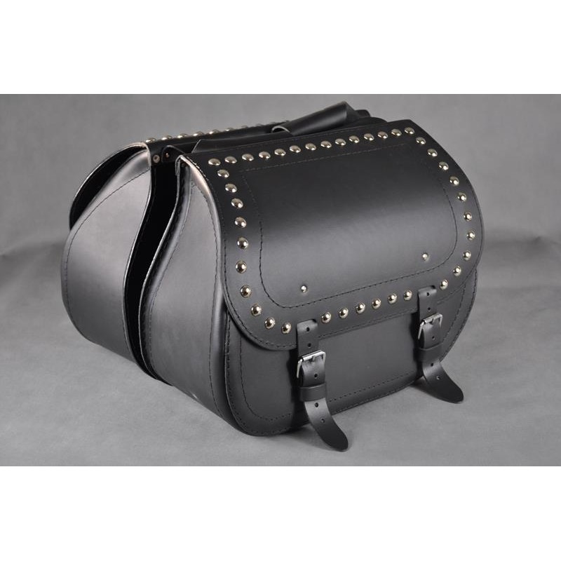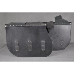 Sadelväskor är tillverkade av starkt nötläder 2mm med plast på ytan.