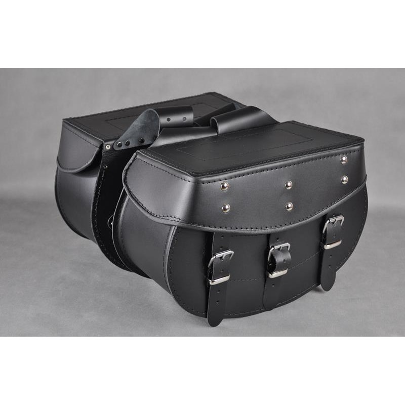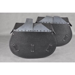 Sadelväskor är tillverkade av starkt nötläder 2mm med plast på ytan.