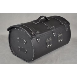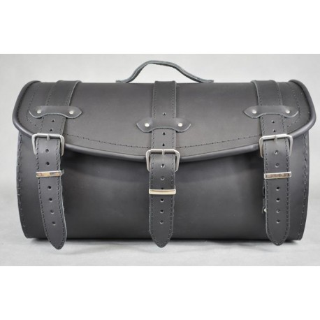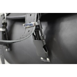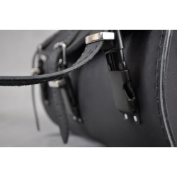 Robust sissy bar-väska tillverkad av naturläder av högsta kvalitet med en tjocklek på 2 mm. Förstärkt med plast för att behålla formen även vid daglig användning. Praktiskt snabbspänne för enkel hantering.
