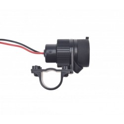 Utrustat med ett kompakt fäste (39 × 25 mm) och en lång kabel (1180 mm) med med öglor för anslutning direkt till batteriet.