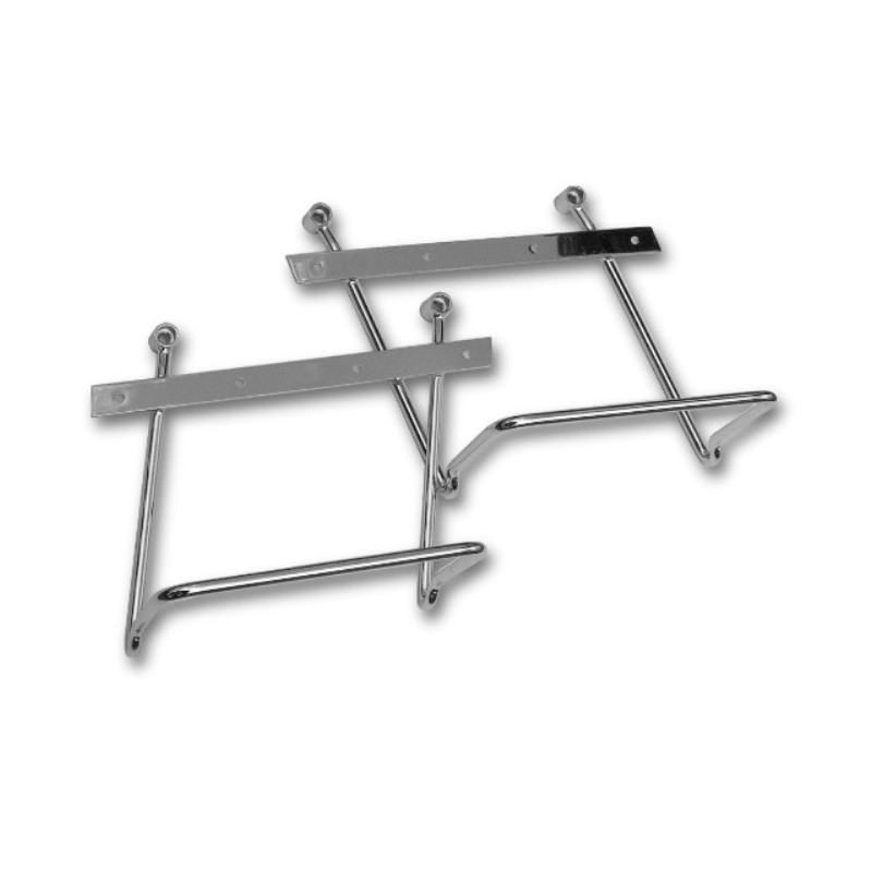Tillverkade i robust metall med slitstark kromfinish som både skyddar mot korrosion och ger motorcykeln ett klassiskt custom-utseende. Passar perfekt för läderväskor.